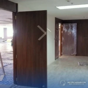 - จัดทำโครงประตูhmr ใส่ใยกันเสียงปิดผิวลามิเนตหน้าหลัง