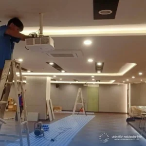 - ติดตั้งระบบเครื่องเสียงและโปรเจคเตอร์พร้อมสกรีนฉายภาพ